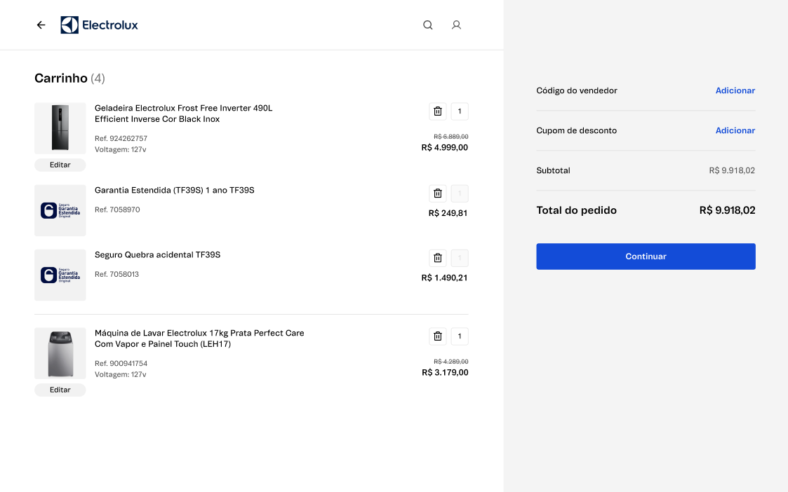 3. Escolha outro serviço oferecido que deseja adicionar e clique no botão Continuar para o carrinho.