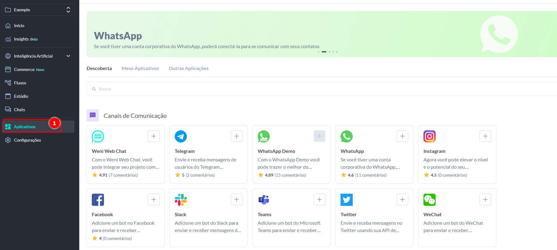 Após realizar as configurações indicadas na seção anterior iremos agora criar um canal do Instagram.