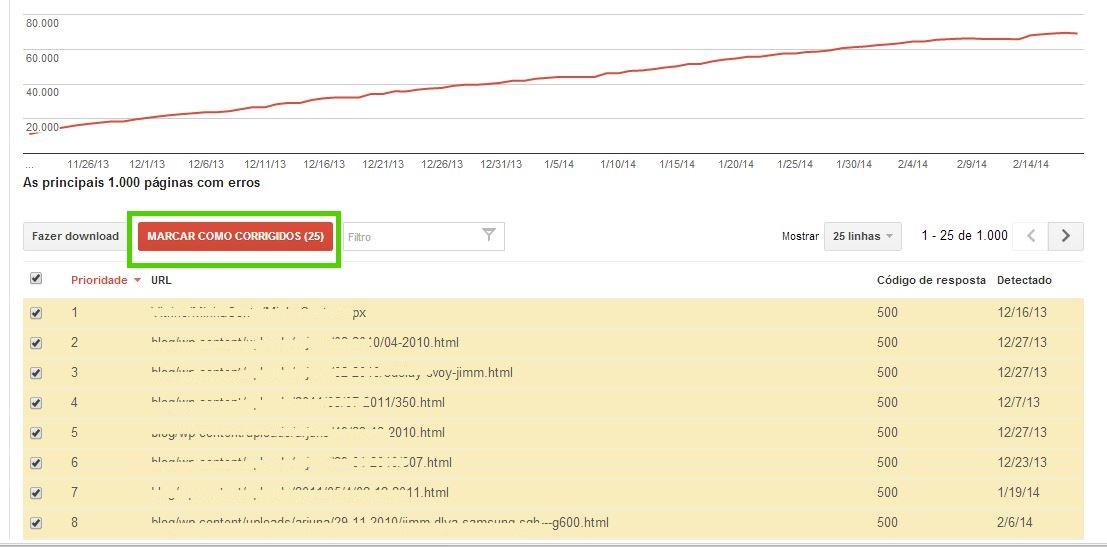 Você poderá incluir esses links na planilha, fazendo referência à Home, ou coleção, o que for mais adequado à sua loja. Após a correção desses links você precisará voltar ao Web Master Tools, clicar em Rastreamento e depois em Erros de Rastreamentos.