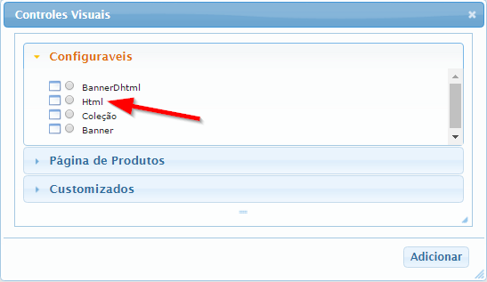 5. Selecione o tipo de controle que deseja, geralmente HTML