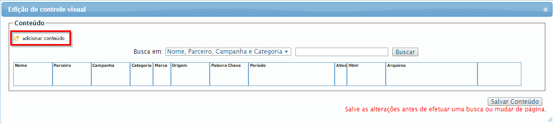 9. Clique em Adicionar Conteúdo