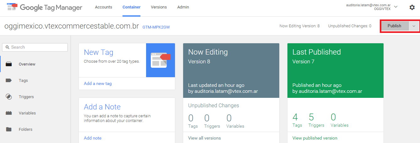 1. Fazer login em http://www.google.com/tagmanager/ para a loja que vamos configurar;