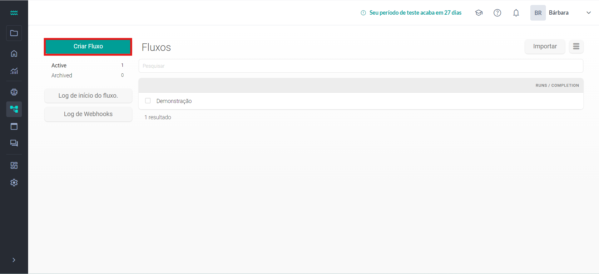 1. Primeiro, iremos clicar no botão de fluxos no nosso menu lateral.