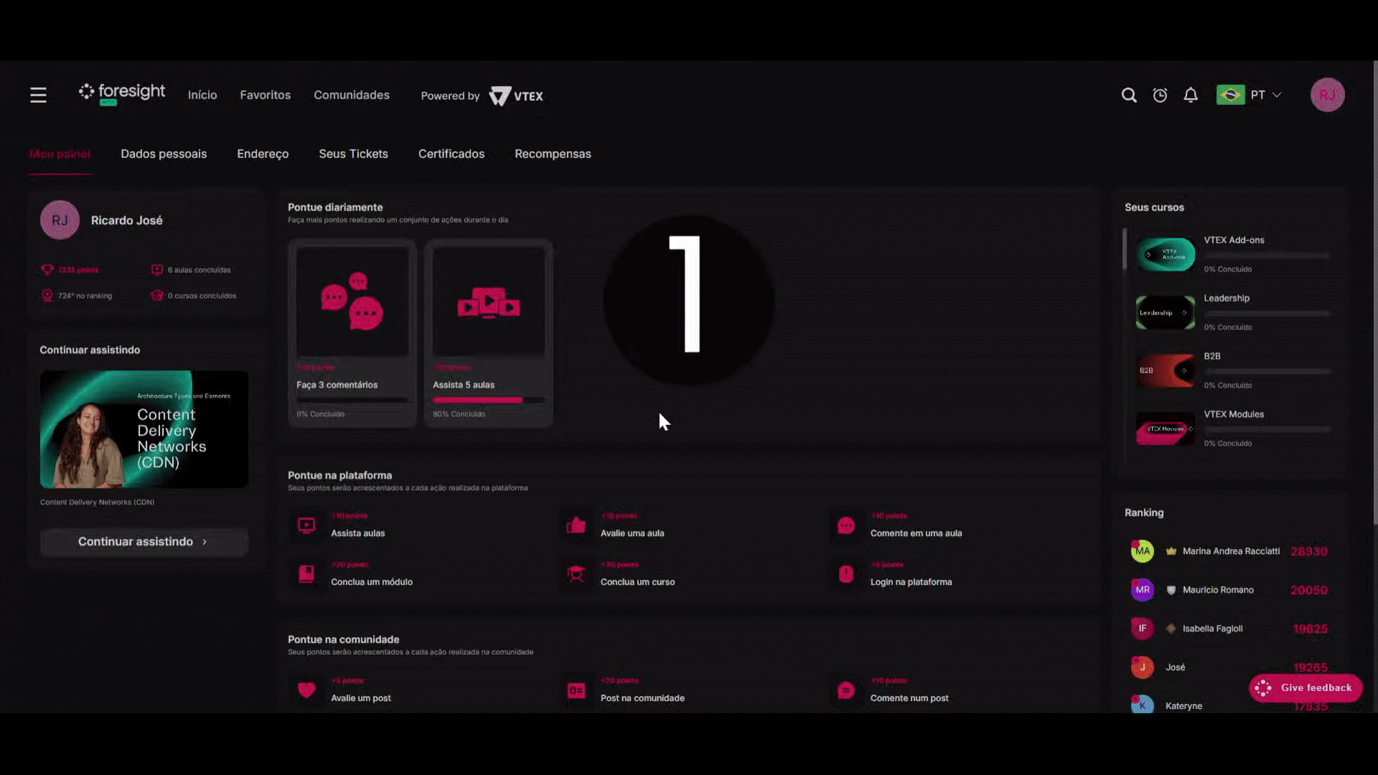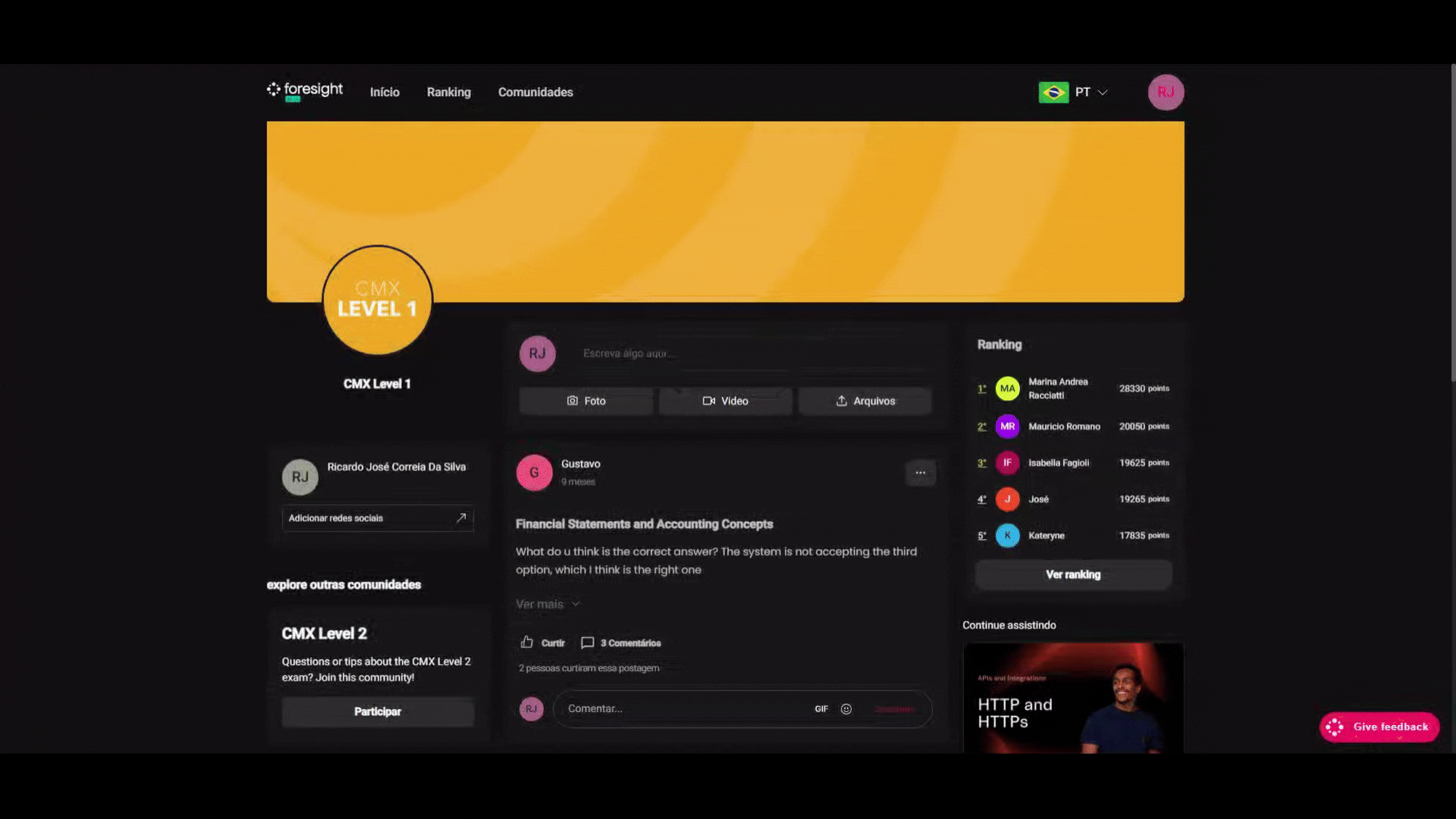 Além disso, o Foresight conta também com as comunidades de membros, onde é possível trocar experiências ou resolver dúvidas sobre assuntos específicos, e um ranking de classificação, para registrar e classificar todos os usuários conforme o nível de interação na plataforma.