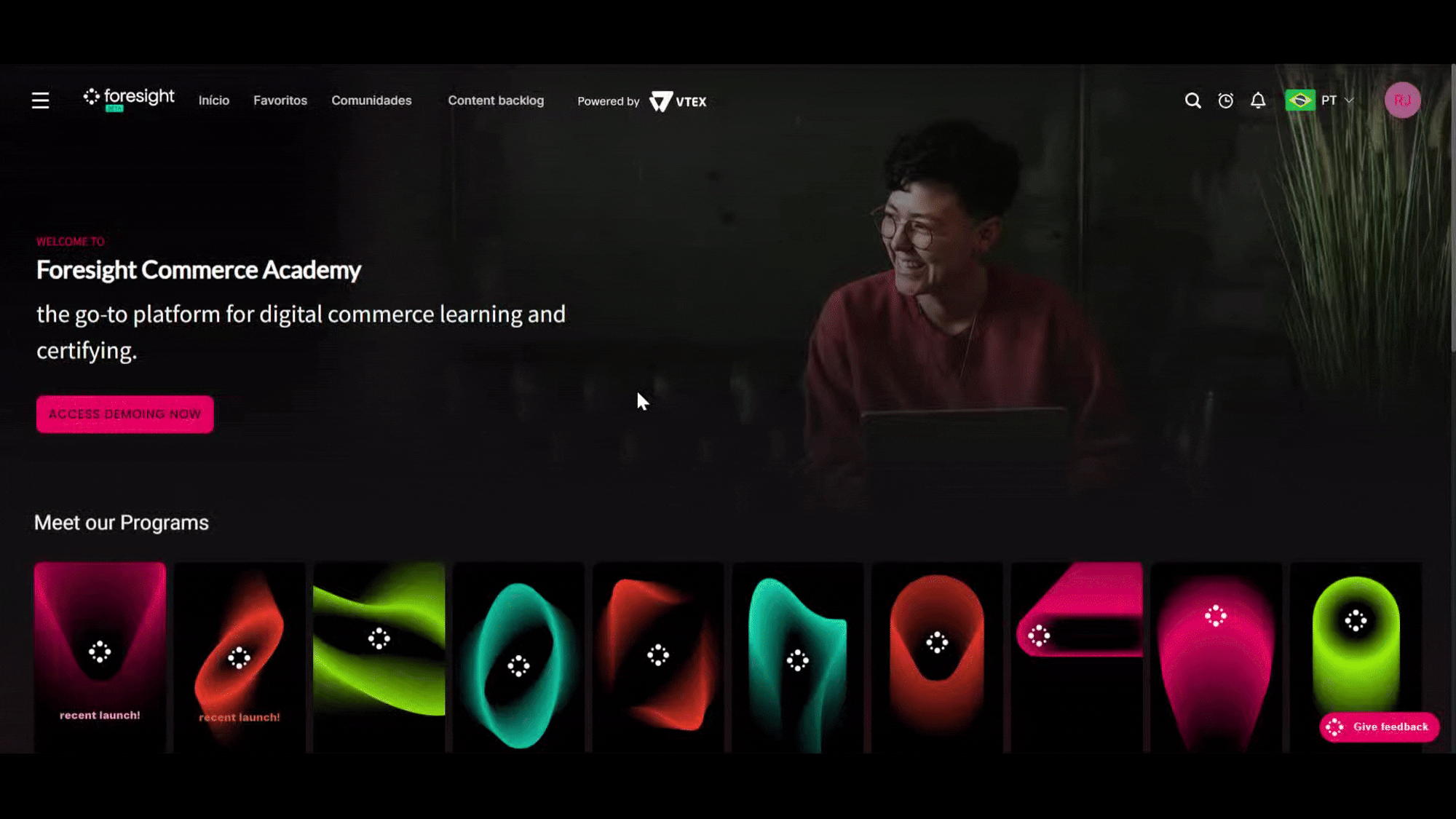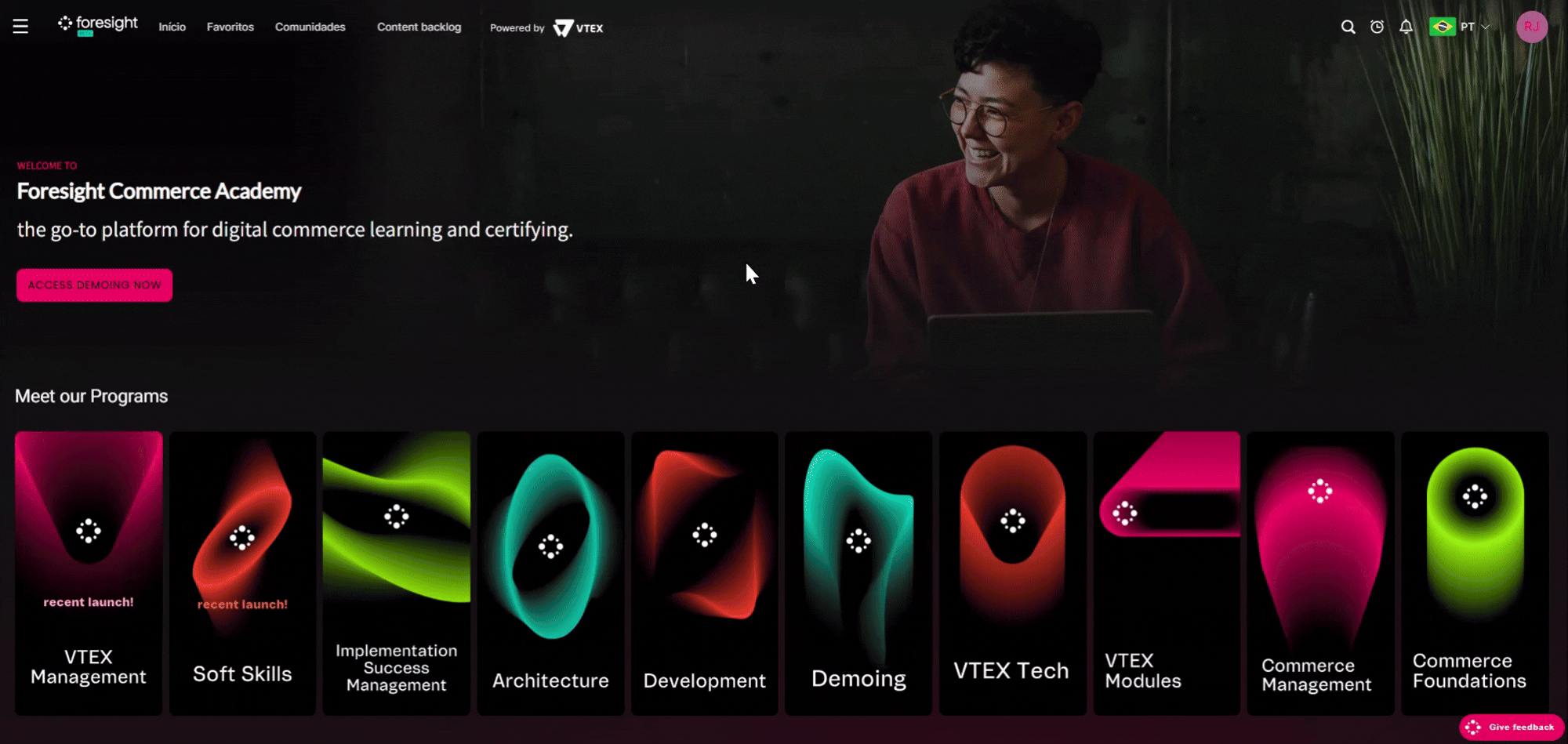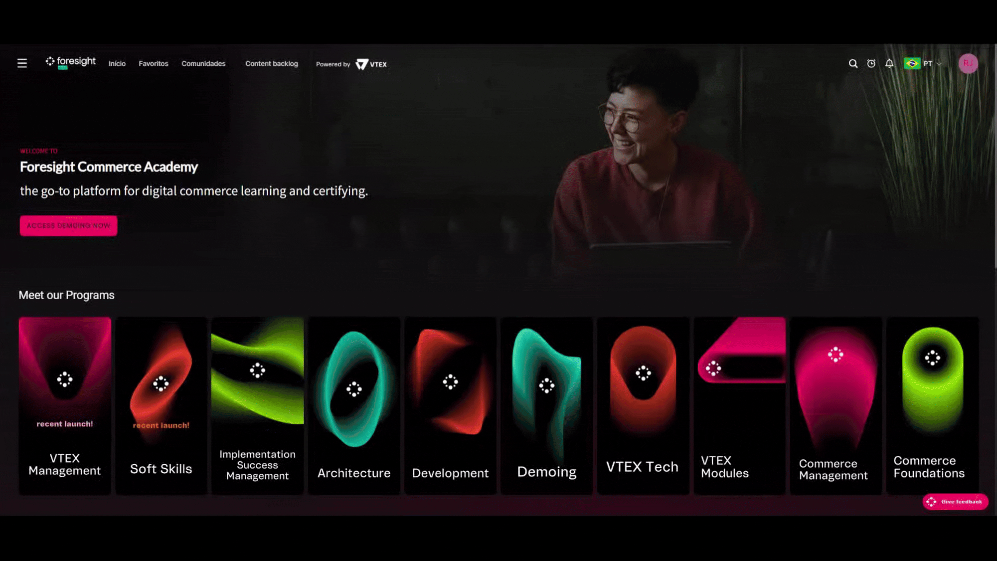 Foresight Commerce Academy é uma plataforma educacional promovida pela VTEX destinada a compartilhar conhecimento sobre diversos temas relacionados a negócios, arquitetura e tecnologia VTEX.