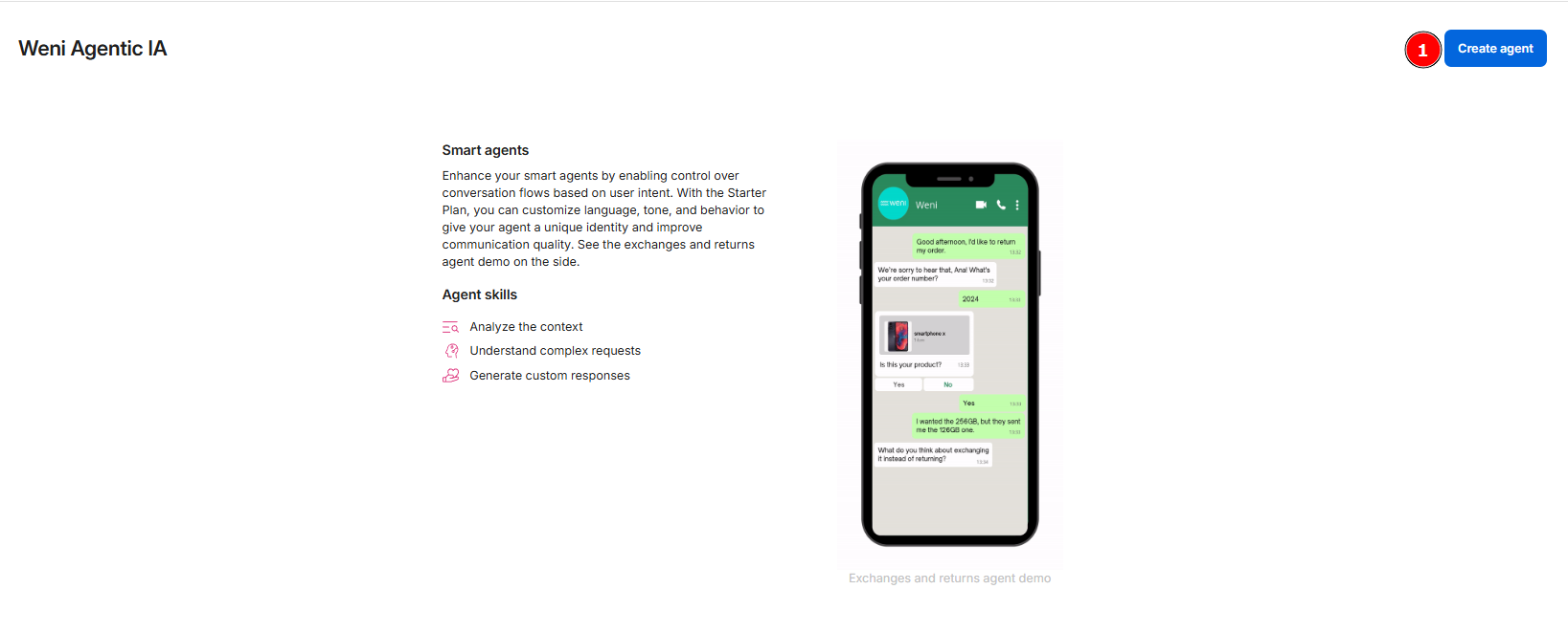 Então clique em Criar Agente para iniciar a configuração do seu projeto.