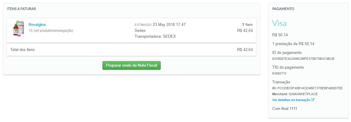 Ao clicar em um pedido no Gerenciamento de Pedidos, você vai para a página que traz um resumo sobre ele. As principais informações estão lá, mas você pode ver ainda mais detalhes se clicar no link Detalhes da transação: