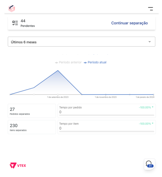 • Pausar separação: pausa a contagem de tempo referente à separação da ordem de serviço.