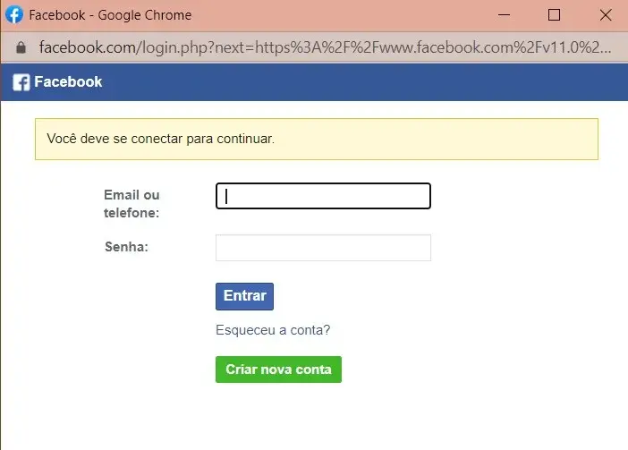 Logo após aparecerá um popup solicitando uma conexão em sua conta de facebook.