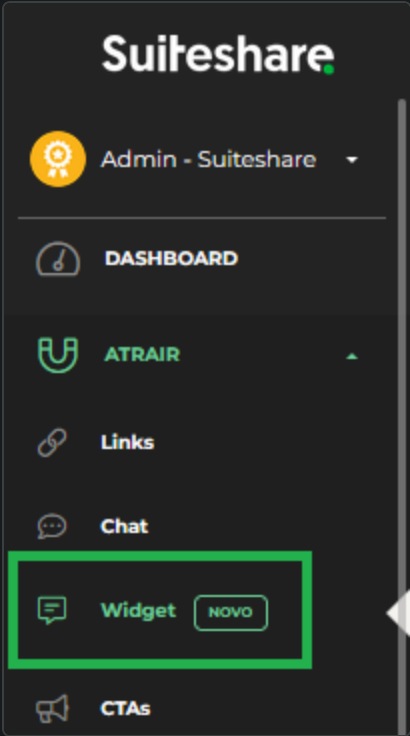 Para configurar o Widget, acesse o menu Atrair > Widget: