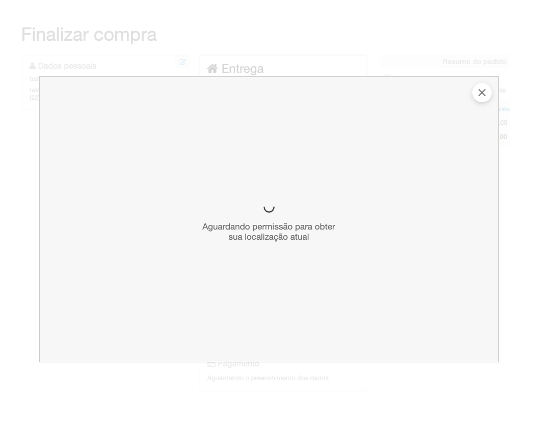 Durante o checkout, se a localização do cliente é obtida pela permissão de localização do navegador, o mapa fica preso com a informação "Aguardando permissão para obter sua localização atual" indefinidamente.
