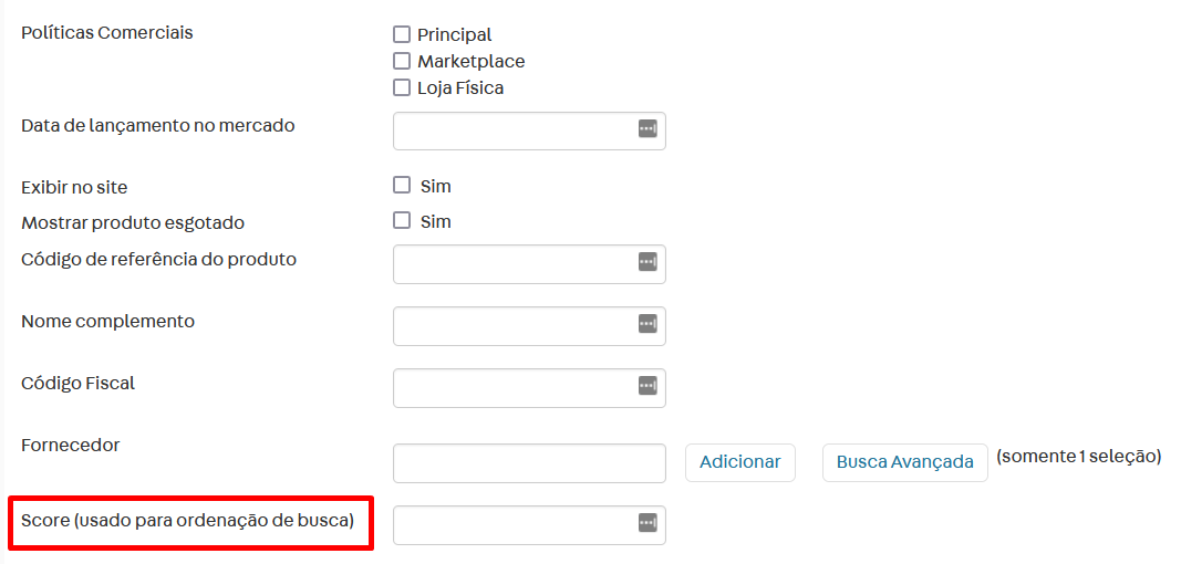 O critério para enumerar o campo segue uma ordenação numérica para apresentar a sequência na vitrine da loja ou na página de resultado de busca. Por padrão, produtos sem um score cadastrado se comportam como se tivessem score igual a 0.