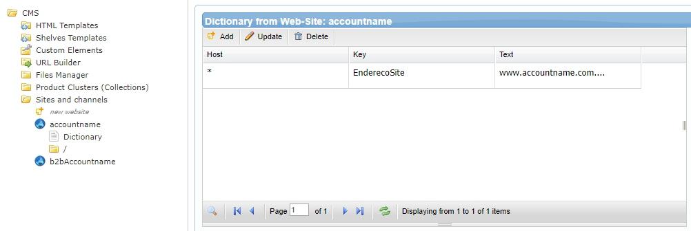 5. Adicione ou atualize uma chave com o nome EnderecoSite.