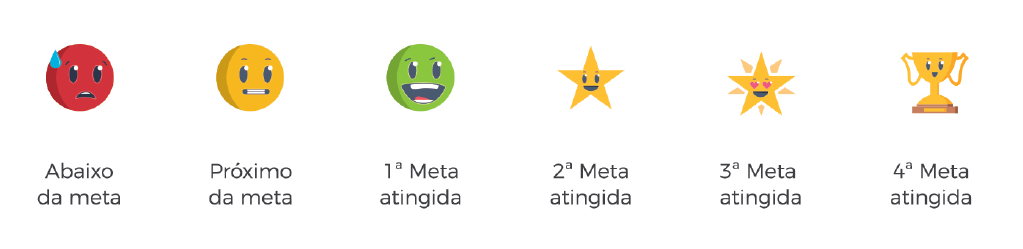 A visualização utiliza uma simbologia por cores, que facilita a identificação de quem está performando dentro ou fora do esperado.