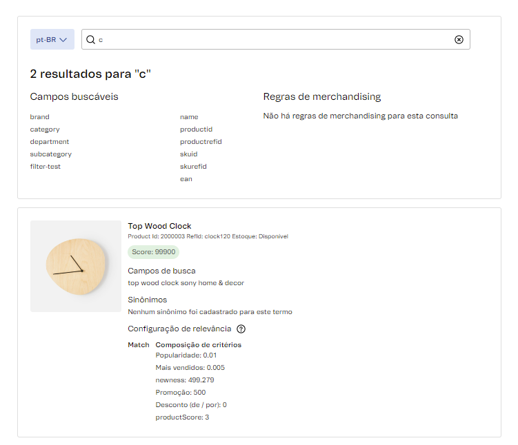 • Configurações e regras de busca (configurados no VTEX Intelligent Search).