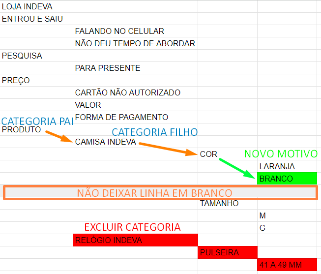 Siga as orientações abaixo ao preencher a planilha de motivos de perda:
