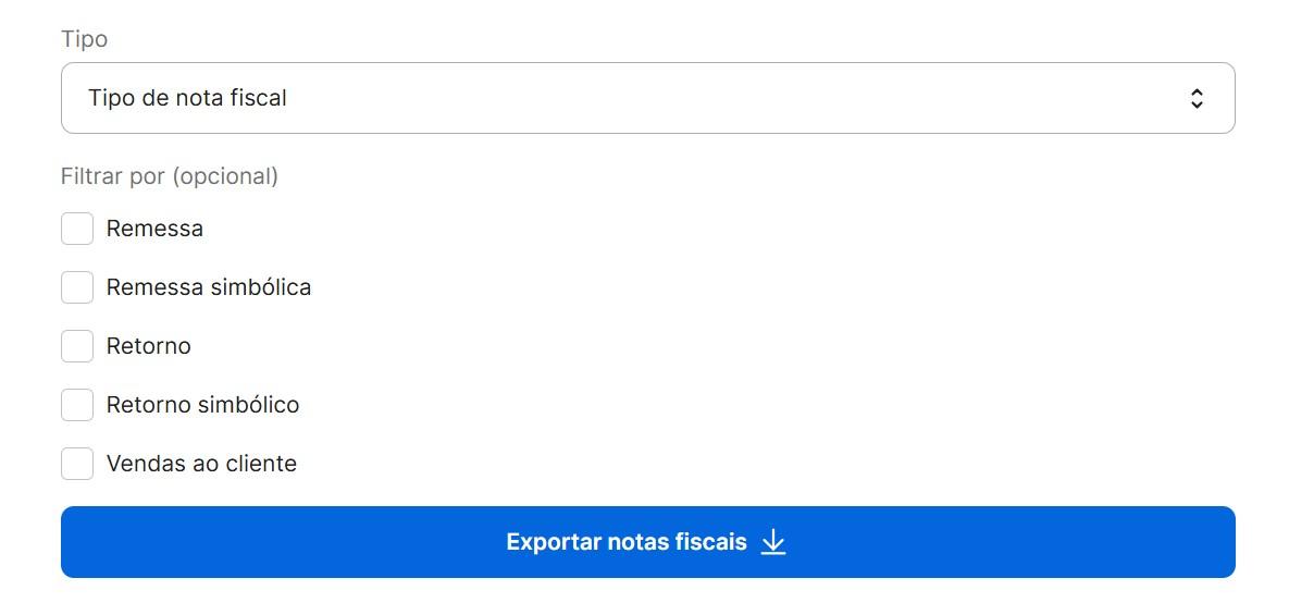 Se o seller não selecionar nenhum filtro de tipo, por padrão o sistema retorna as notas fiscais de todos os tipos.