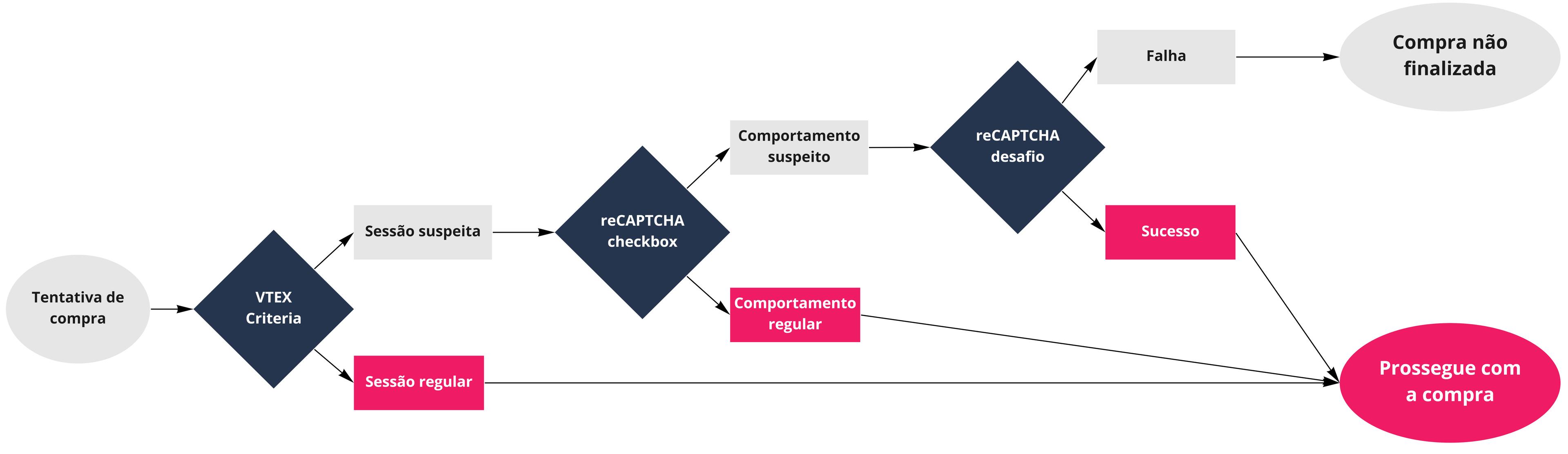 A regra de aplicação do reCAPTCHA em compras com cartão pode ter diferentes configurações.
