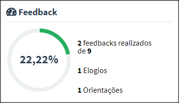 Exemplo: 2 de 9 feedbacks realizados, com 1 elogio e 1 orientação, representando 22.22% de conclusão.